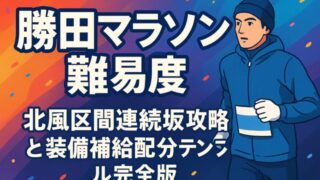 大会・コース 勝田マラソン難易度|起伏と風を制す関門対策!北風区間連続坂攻略と装備補給配分テンプレ 勝田マラソン 難易度の実像を公式情報と実走レビューで解説。高低差と向かい風の難所、制限時間と関門通過の配分、サブ4/サブ5向けペース表、装備と補給の具体策、アクセス動線まで網羅する実践ガイド。1月の気象条件や給水所位置も確認でき、初参加でも迷わず準備が進む。 2025.10.05 大会・コース