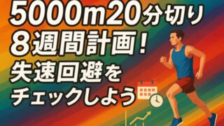 トレーニング 5000m20分切り8週間計画!VO2max閾値を強化し失速回避をチェックしよう 5000m 20分切りの達成基準と目標ペース、8週間計画、インターバルとテンポ走、フォーム改善、当日戦略、補強と栄養を一体化。ラップ早見表とチェックリストで失速を防ぎ、忙しくても再現性高く記録更新へ導きます。 2025.09.25 トレーニング