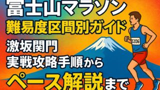 大会・コース 富士山マラソン難易度区間別ガイド|激坂関門実戦攻略手順からペース解説まで 高低差約100mの激坂、橋上の風、寒暖差と渋滞—富士山マラソンの難易度を区間別に可視化。最新の関門時刻から逆算した安全ペース、装備・補給、12週間練習計画で完走力を底上げします。 2025.09.20 大会・コース