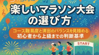 大会・コース 楽しいマラソン大会の選び方|コース難易度と演出のバランスを見極める初心者から上級までの判断基準 景観・応援・エイドを軸に楽しいマラソン大会を選ぶ方法と、仮装や音楽演出の楽しみ方、混雑回避や暑熱対策、遠征計画までをチェックリスト付きで具体化。読後すぐに大会選びと当日運びが整います。 2025.09.20 大会・コース