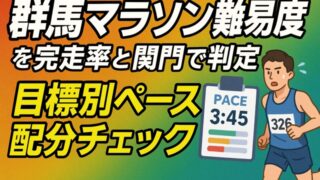 大会・コース 群馬マラソン難易度を完走率と関門で判定|目標別ペース配分チェック 群馬マラソンの難易度を、コース特性・関門・気象・装備・練習から総合判定。区間別注意点や関門逆算ペース、気温別補正、補給動線とチェックリストで完走と自己ベストを現実にします。 2025.09.22 大会・コース