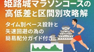 大会・コース 姫路城マラソンコースの高低差と区間別攻略解説|タイム別ペース設計と失速回避の為の簡易配分ガイド付き 姫路城マラソン コースの全体像・高低差・風を踏まえた区間別ペースと給水補給、混雑回避や当日動線まで具体的に解説。タイム別テンプレと表・チェック付きで失敗を減らします。 2025.09.19 大会・コース