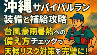 大会・コース 沖縄サバイバルラン装備と補給攻略|台風豪雨暑熱への備え方チェックで天候リスク対策を完璧に! 沖縄サバイバルランの完走率を上げるために、コース形式・アクセス・装備・補給・リスク管理・練習計画を体系化。暑熱や台風に強い持ち物と区間戦略、当日動線まで実務的に解説します。 2025.09.21 大会・コース