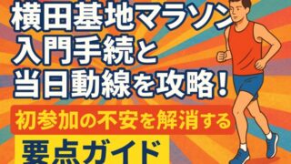 大会・コース 横田基地マラソン入門手続と当日動線を攻略|初参加の不安を解消する要点ガイド 横田基地マラソンエントリー手順、本人確認と入門、アクセス動線、コース攻略、防寒装備、タイム別練習までを一括解説。高低差対策やチェックリストで当日の迷いをゼロに導く実践ガイド。 2025.09.21 大会・コース