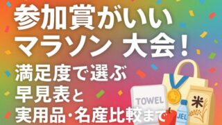 大会・コース 参加賞がいいマラソン大会!満足度で選ぶ早見表と実用品・名産比較まで 参加賞がいいマラソン大会を、実用品・食品・限定デザイン・サステナの4軸で可視化。最新トレンド、規模別傾向、コスパ比較、チェックリスト付きで当日も事後も役立つ選び方を解説。 2025.09.17 大会・コース