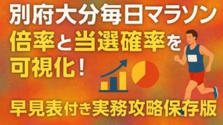 大会・コース 別府大分毎日マラソン倍率と当選確率を可視化!早見表付き実務攻略保存版 定員・申込数・申込方式を整理し、別府大分毎日マラソン 倍率の読み方と対策を体系化。先着突破の準備、抽選最適化、資格記録づくり、宿泊・交通・費用の判断軸、当日チェックリストまで1本で完結。 2025.09.17 大会・コース