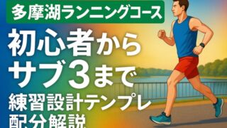 大会・コース 多摩湖ランニングコース|初心者からサブ3まで練習設計テンプレ配分解説 多摩湖のランニングコースが初めてでも迷わず走れるよう、周回距離の目安、アクセスと駐車、給水・トイレ位置、混雑回避、季節装備、安全マナー、ペース別メニューまでを一括整理。保存版のチェックリストで当日運用が簡単。 2025.09.18 大会・コース