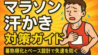 大会・コース マラソン汗かき不利なのか?暑熱順化とペース設計で汗の多さを強みに変える|大量発汗でも失速しない実践対策ガイド! マラソン 汗かき 不利に悩むランナーへ。発汗量の見える化と給水・塩分の最適化、吸汗速乾ウェアや冷却テク、暑熱順化とペース設計で失速を防ぐ実践ガイド。 2025.09.08 大会・コース